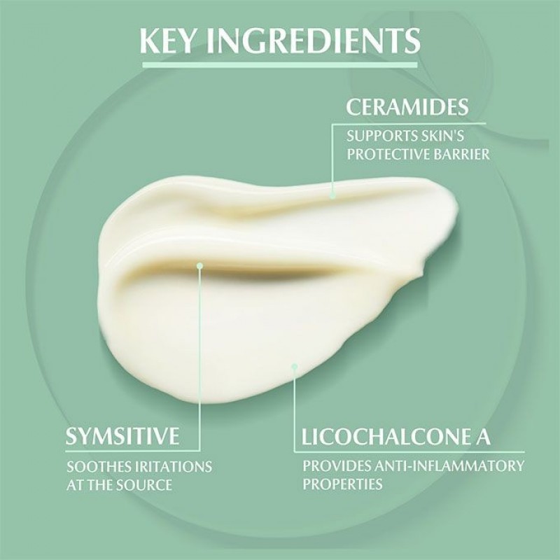 One of the side effects of acne medication is that it frequently causes severe dryness in skin. This intensely moisturising, non-greasy cream soothes these symptoms. Ceramides support skin’s protective barrier and reduce moisture loss, SymSitive* helps to calm irritation such as stinging and burning directly at source and Licochalcone A helps to reduce redness. The formula helps to bring demanding, blemish and acne-prone skin under control and it feels smooth and supple after the first application.