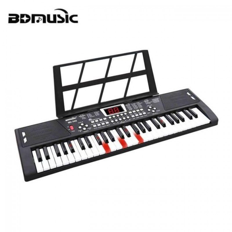 This is a mini Lighting 54keys children piano keyboard. It can be operated by batteries( unscrew the battery compartment at the back side) or DC Adapter (the batteries are not Included) Features: